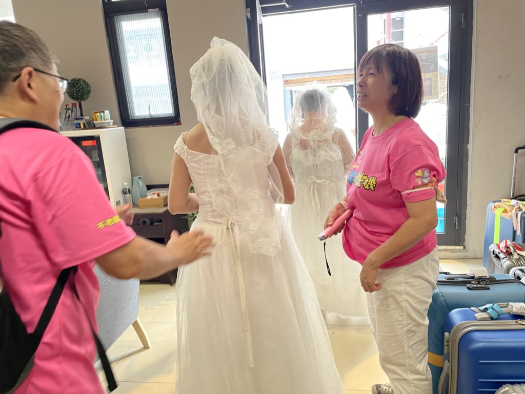 邱秀蘭回台後跟社區的長輩們提議此事,立即得到大力的回響,並立刻規畫分工,有婚紗禮服組、捧花製作組、髮型、梳化、彩妝組、其中髮型梳化彩妝最為困難,還特地請專業的設計師開班授課,民權社區的長輩們出錢出力每天忙得不亦樂乎,經過推選後將共有24位長輩親赴社區為長輩好友們打理婚紗秀的所有工作。而這趟圓夢旅程長輩們也將扛起50套婚紗禮服、捧花、梳化妝箱、音響設備及道具搭飛機前往金門前線金城、金湖鎮東門、瓊林、湖前社區,邱秀蘭表示,這對年紀不小的長輩們也是很大的體能挑戰,她要特別感謝永和地方紳士胡維新、共生宅發展協會、金門浯島文旅大哉實業有限公司、二毛旅行社有限公司的大力協助,也希望過程能夠圓滿。